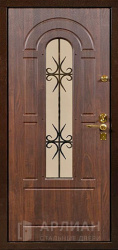 Стальная входная дверь в квартиру с ковкой и стеклом №14