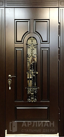 Утепленная входная дверь для коттеджа с кованными элементами №28