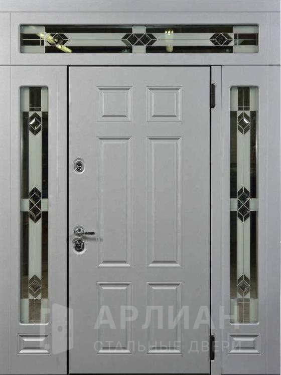 Входная арочная дверь с витражом и решеткой №419