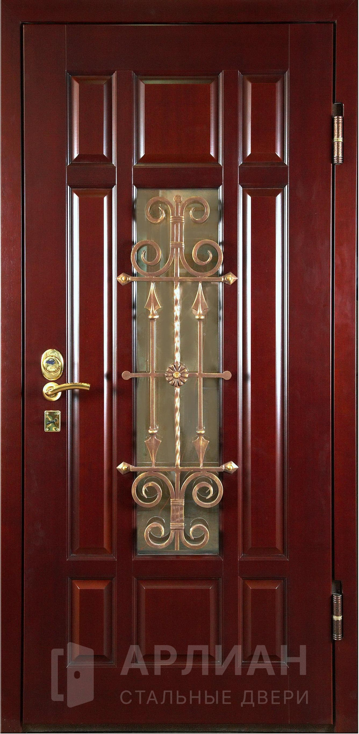 Замена цвета отделки бесплатна. За дополнительную плату дверь может комплектоваться любыми замками и фурнитурой, а также в любую дверь можно добавить зеркало, стеклопакет и кованные элементы.